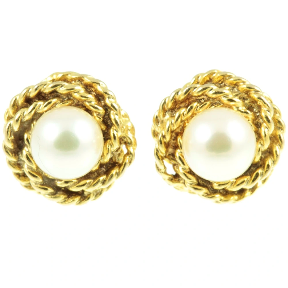 An attractive pair of gold & pearl stud earrings. A pair of well-matched freshwater pearls measuring 6mm in diameter have been set in the centre of an 18ct yellow gold twisted rope collet setting. The delicate lustre of these pearls contrasts beautifully with the rich yellow gold. A beautiful pair of earrings.