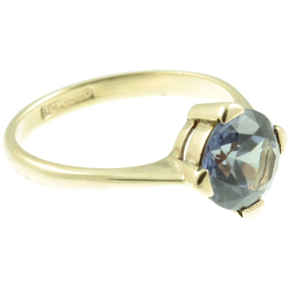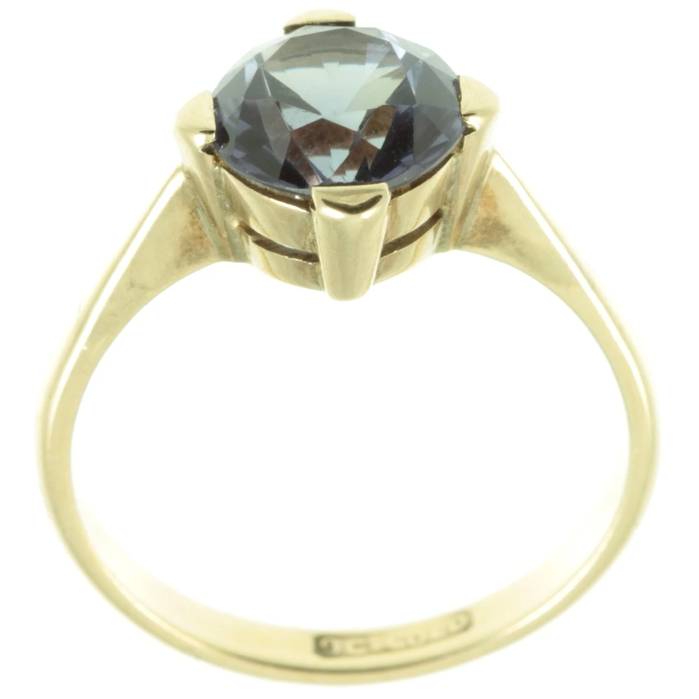 A beautiful 9ct gold Amethyst ring. A round-cut solitaire Amethyst weighing 1.34ct has been set in 9ct yellow gold. A tasteful piece of vintage jewellery, which looks very smart when worn.