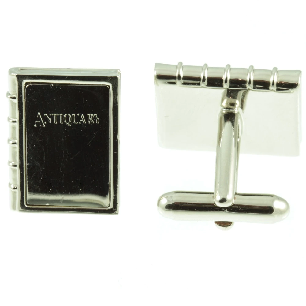 A pair of Vintage 1980s book cufflinks. Silver-tone book cufflinks, stamped “Antiquary”. A must-have for all book lovers.