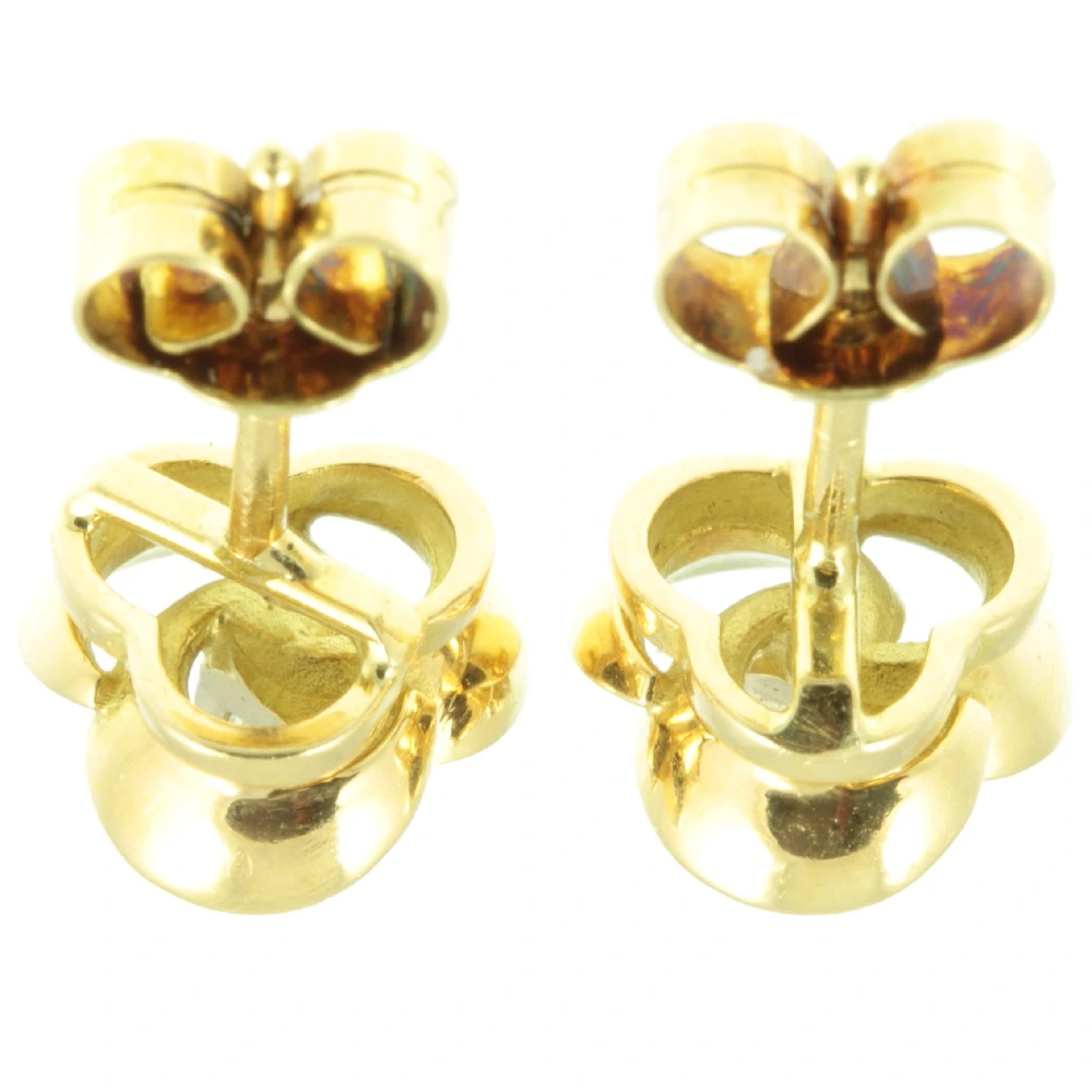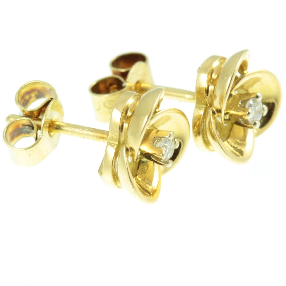 A pair of pretty Mid-Century Diamond Floral Stud Earrings. Two round brilliant cut diamonds with a combined weight of 8 points have been securely set in a rich 18ct yellow gold floral setting. A very tasteful pair of vintage earrings.