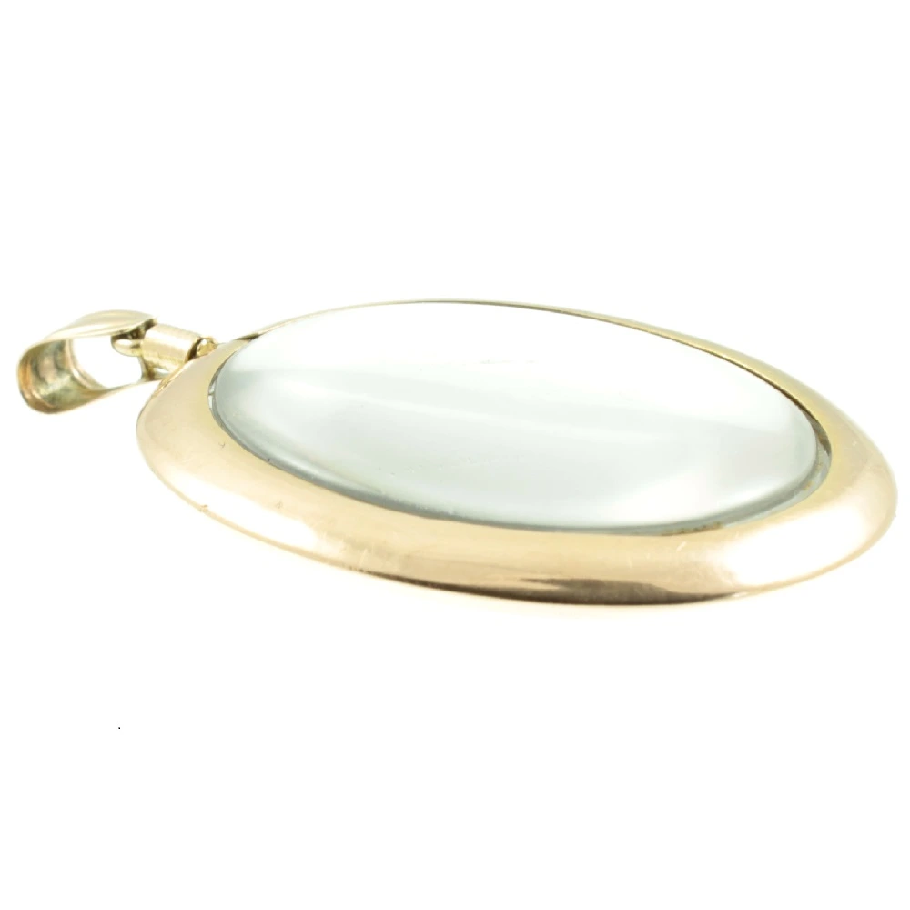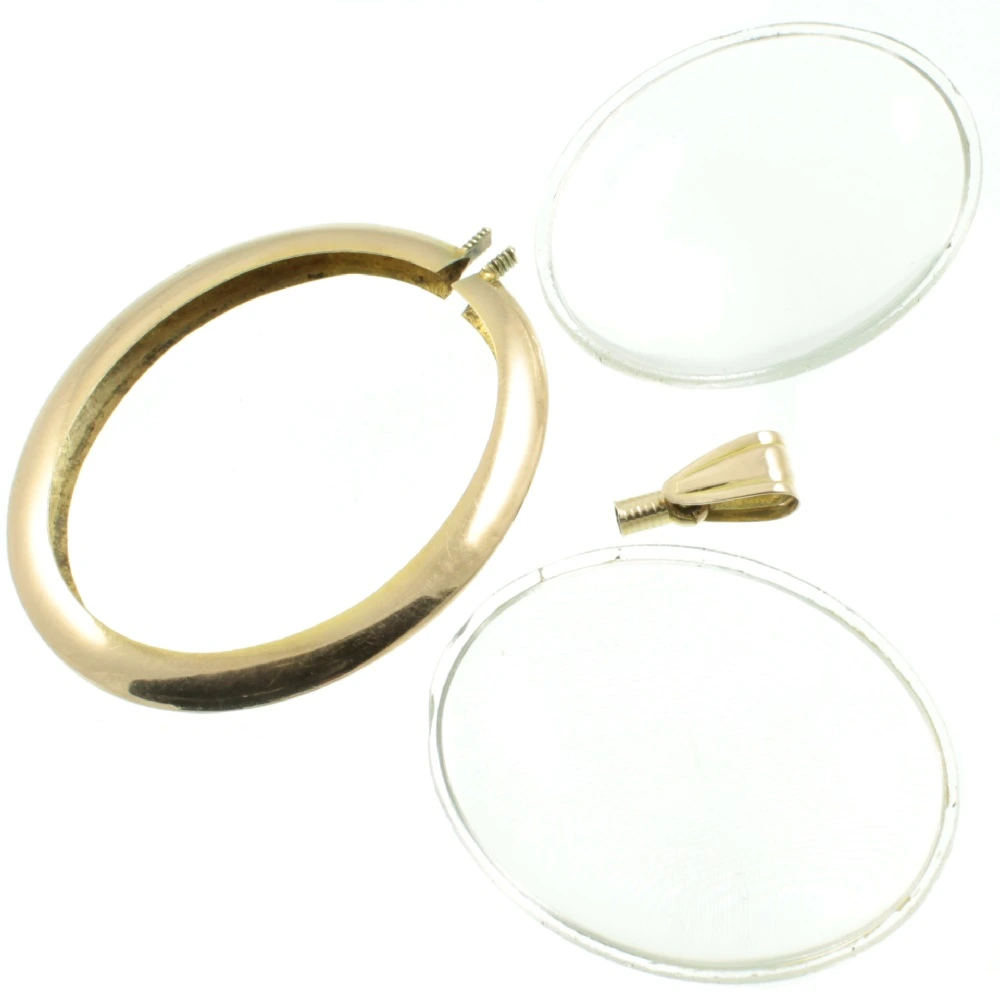 A beautiful Edwardian double sided 9ct Gold Glass Locket. Two oval cabochon pieces of glass are held together with a 9ct rose gold frame and securely fixed with a threaded bail. A well-made piece of antique jewellery.