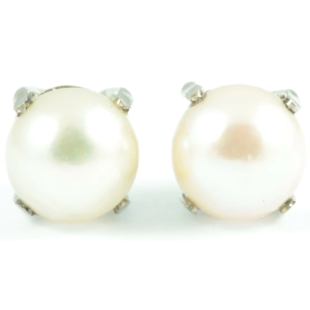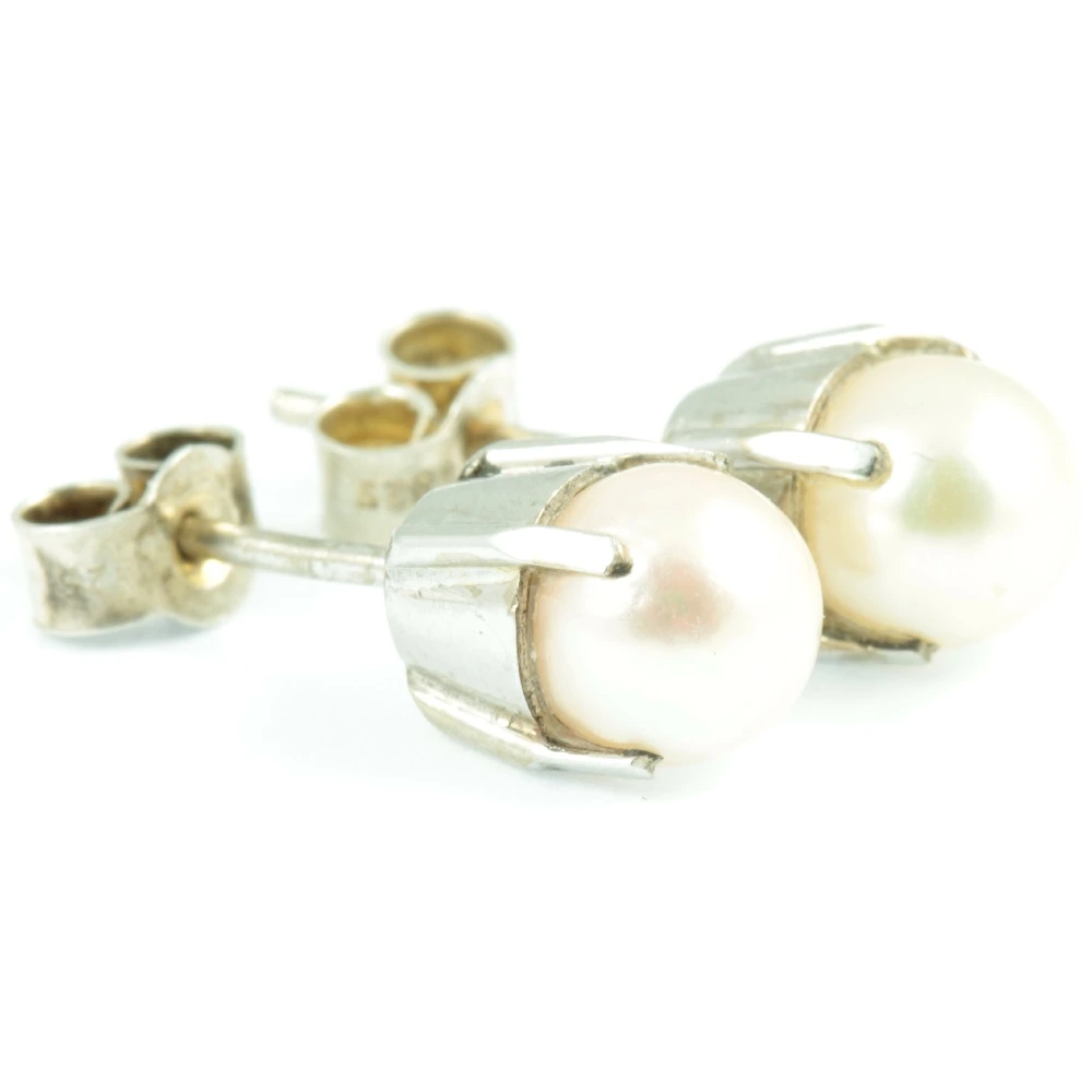 A stylish pair of Retro Silver and Pearl Stud Earrings. A well-matched pair of pearls measuring 6mm in diameter have been set in a sterling silver claw setting. These beautiful pearls have a lovely rich lustre to them and have a timeless quality about them.