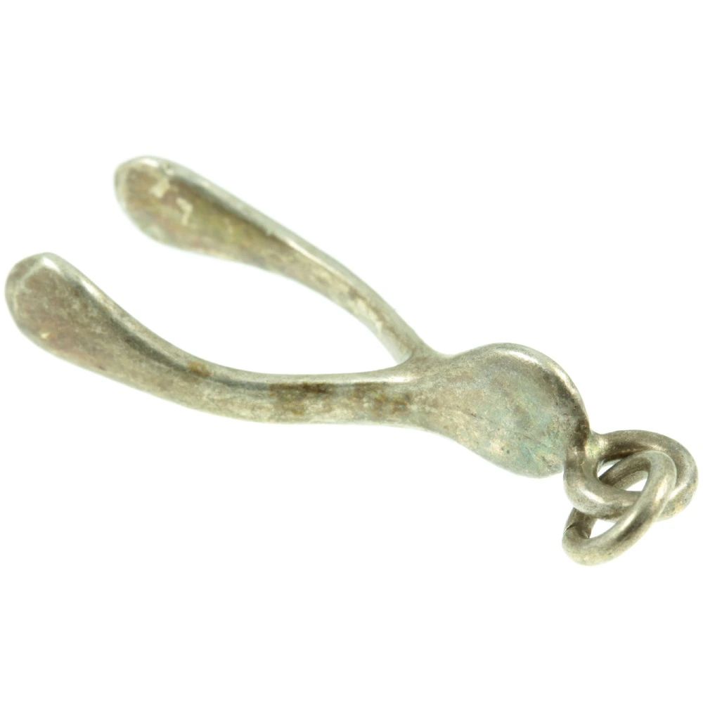 A silver wishbone charm.