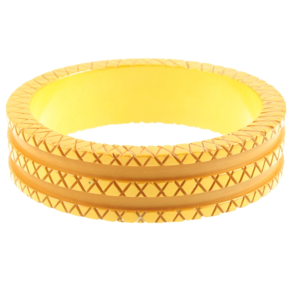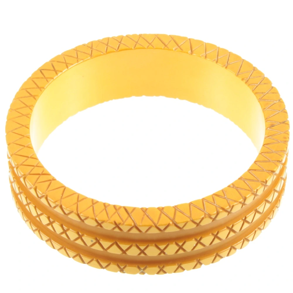 A unique Retro Tan Bakelite Bangle. A tan-coloured bakelite bangle, which has been carved. A beautiful example of 1940s costume jewellery.